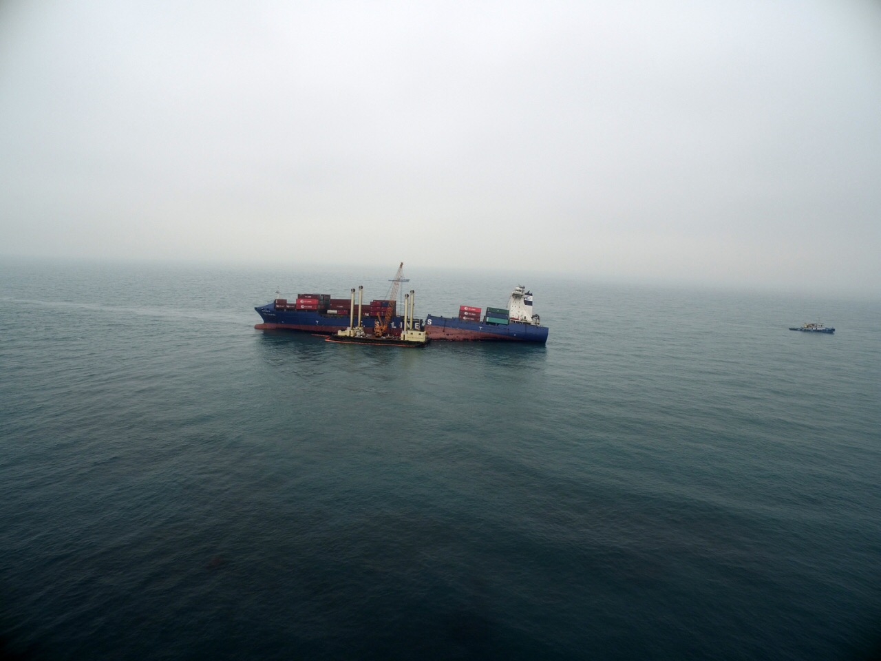 本國籍「德翔臺北」貨輪於105年3月10日擱淺,環保署持續於新北市石門區公所開設油污染現場應變中心,並於今(31)日召開第22次現場應變中心會議。環保署今日持續以遙控無人駕駛航空器系統(Unmanned Aircraft Systems, UAS)進行海域及岸際污染情形監控作業。因事故船右舷於船東設置攔油索及吸油棉後,仍持續有微量油漬滲漏現象,應變中心要求船東儘速於外側加強設置一層攔油索及一層吸油棉攔阻設施,並加派工作船或平臺船待命隨時進行油污清除作業。