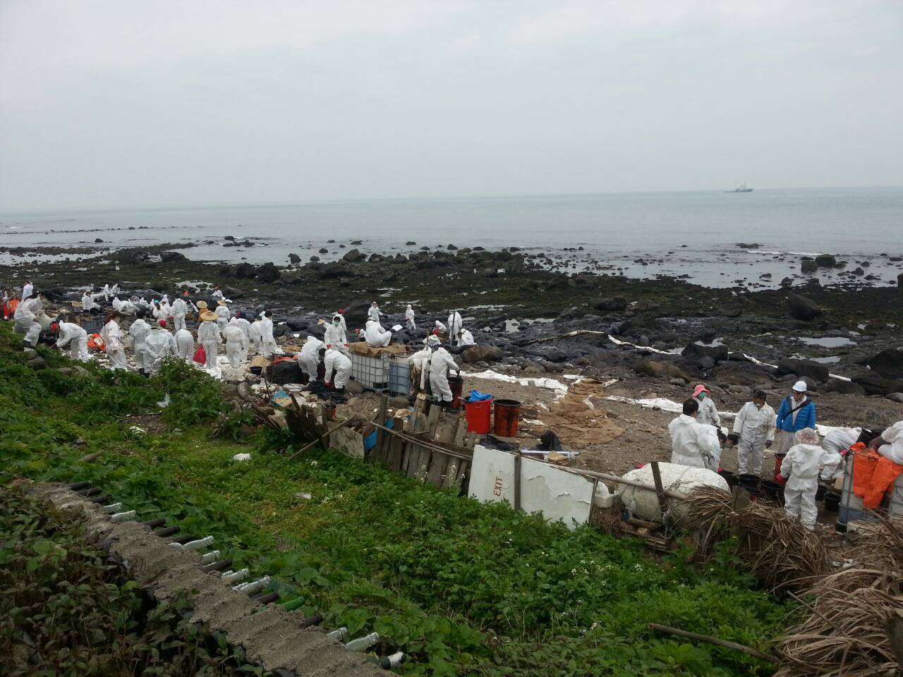 今日岸際油污染清除作業共計清除垃圾量1,600公斤、油污2,600公升。應變中心要求已經上岸之重油應儘速於4月1日前完成第一階段撈除浮油作業,岸際清理人員在工作區現場ㄧ定要注意戴口罩與禁止抽菸,以免造成危害。工作區內之吸油棉吸附飽和後,請儘速更換新品,以保持吸油效果。