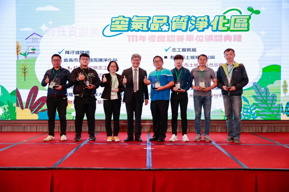 今日頒發的獎項是由學者專家組成甄選小組,對111年度空品淨化區維運成果進行評比,分為績優獎、特殊貢獻獎及服務模範獎等3大獎項。績優獎是表揚認養單位的績優維運成果,特殊貢獻獎是頒給具標竿性學習效果之基地,而服務模範獎則是肯定認養單位多年持續付出心力,積極守護環境綠化。另為肯定地方政府積極推動空品淨化認養工作,並遴選出臺中市、桃園市、屏東縣、宜蘭縣、彰化縣、新竹市、新竹縣等7個推動認養績優之縣市政府。