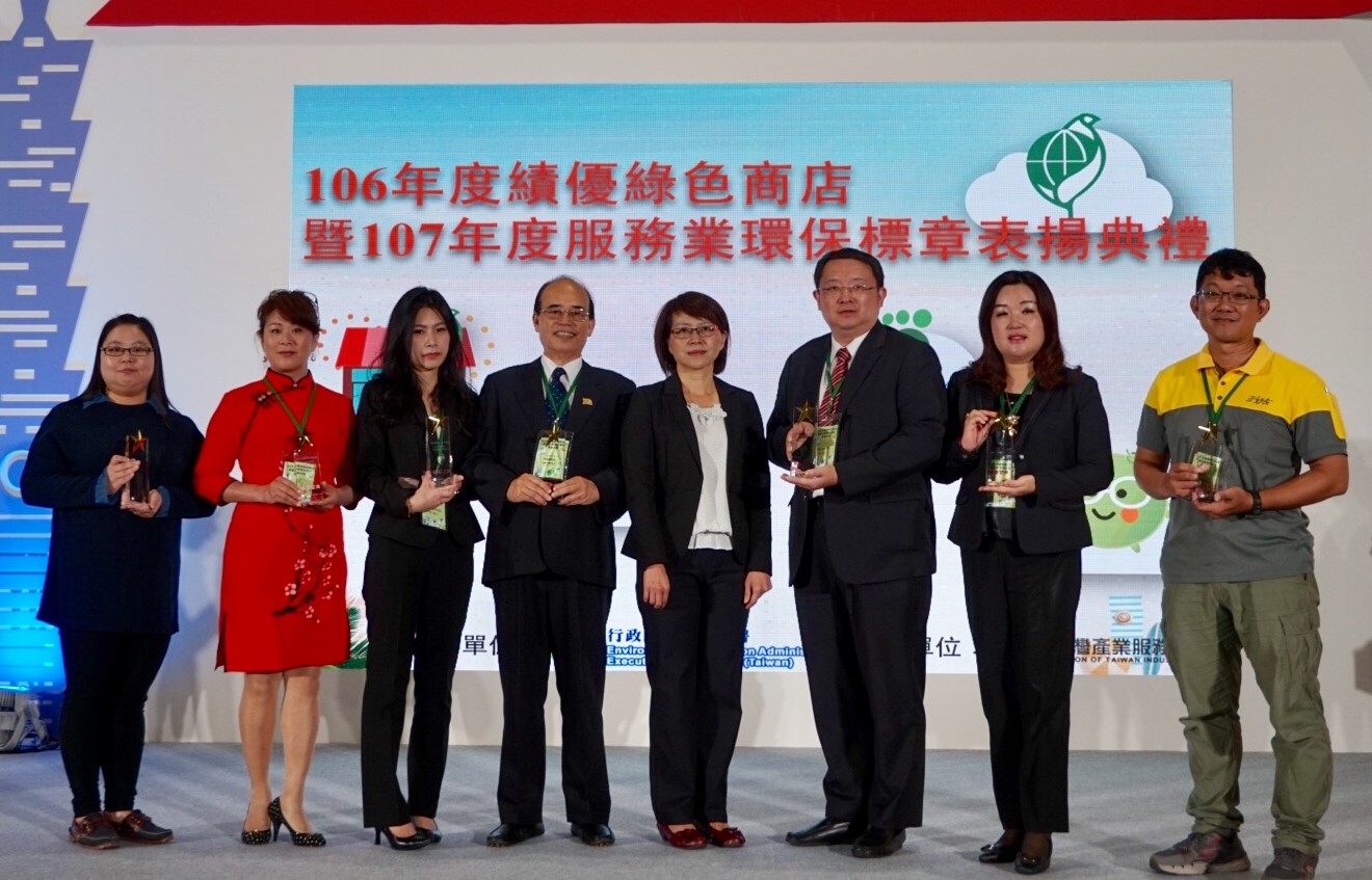 為提升我國綠色消費氛圍,歷年來環保署實施多項措施,自81年起推動「環保標章」制度,至今約有4,700項有效產品,其中服務業環保標章有20項;98年起推動「產品碳足跡標籤」制度,截至107年11月16日,也有414項有效碳足跡標籤產品及15項碳足跡減量標籤產品。其後,為使消費者更便利地購買到綠色產品,自97年起推動綠色商店計畫,目前約有1萬1千家綠色商店,106年度綠色商店販售綠色產品金額約達444億元,成果相當豐碩。上述政策之推動,係仰賴台灣富士全錄股份有限公司、台象股份有限公司、大買家股份有限公司、順鈺行及弘民行等綠色商店共同之配合及努力(表揚名單詳如附件),此外,環保署也非常感謝澎湖福朋喜來登酒店、西湖渡假村、雅霖大飯店、甲桂林商務旅館、星漾商旅(中清館)、珠山19號民宿(陶然居)、想耀民宿及正好友生態環保旅店等業者,響應服務業環保標章政策,取得環保標章,積極推動綠色生活。