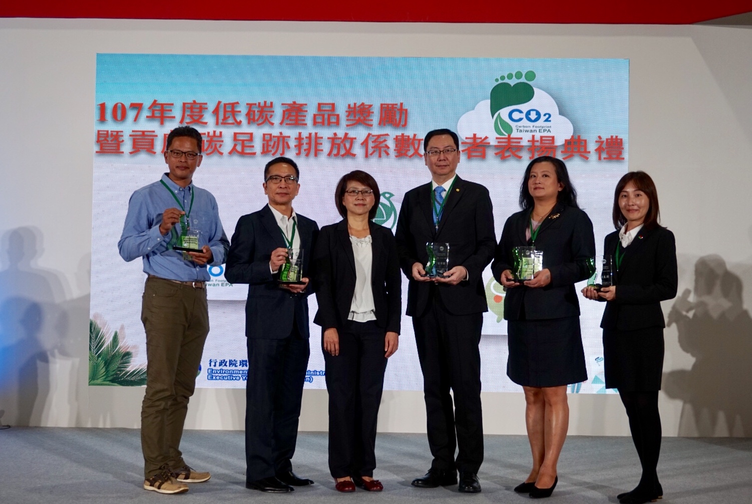 另為鼓勵業者生產低碳產品,環保署自106年起每年評選國內優秀事業,今年共有5家業者獲獎,其中以石安牧場表現最佳,該牧場透過增設雞糞沼氣發電機,建置再生綠能系統,並利用飼養雞隻所產生之禽糞和廢水,進行沼氣發電,減碳成效高達59.27%,獲得特優獎。其次,為感謝無私貢獻產品碳足跡係數的公私部門,今日將同步表揚12個公私部門,盼能引導其他業者仿效,共創綠色市場。