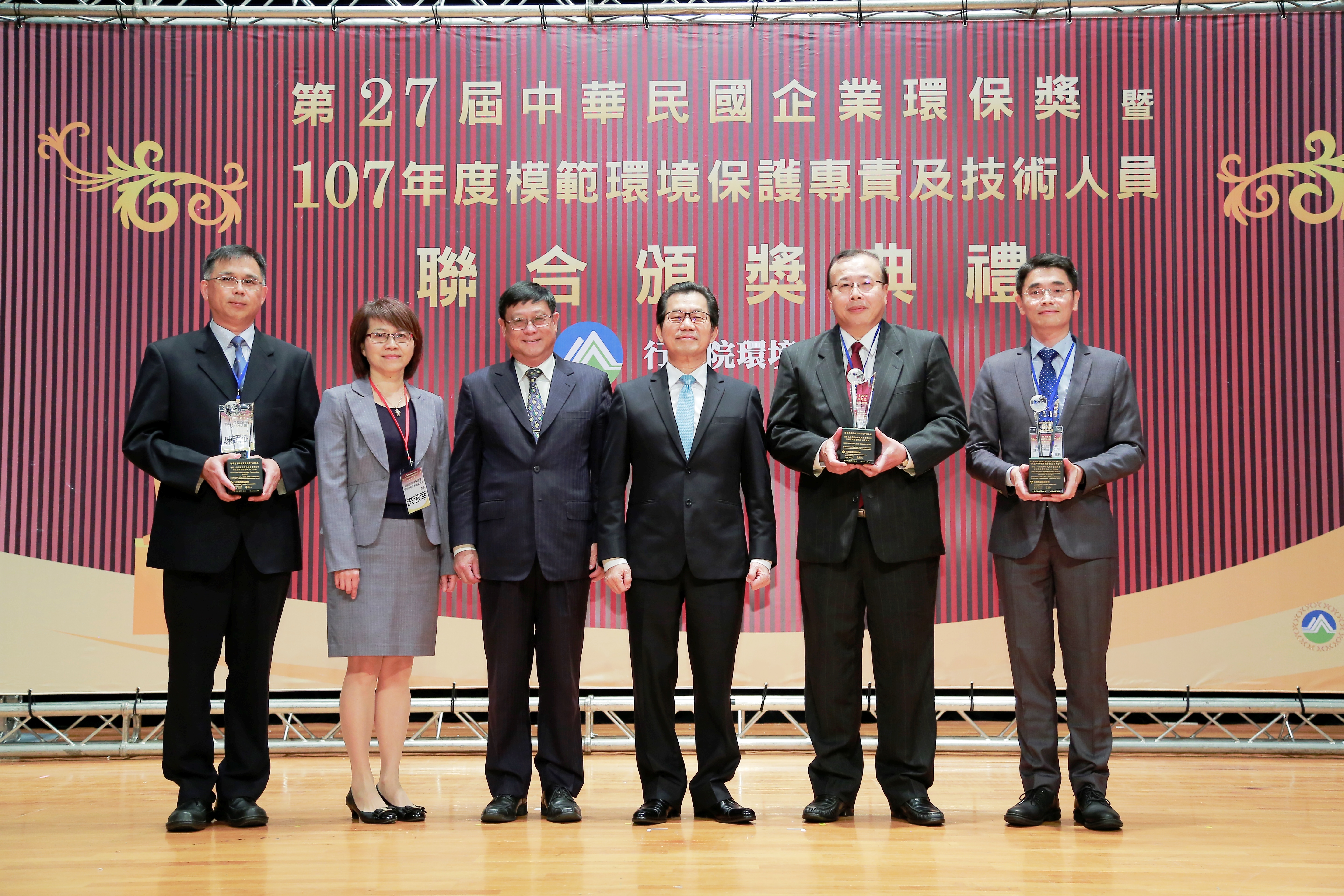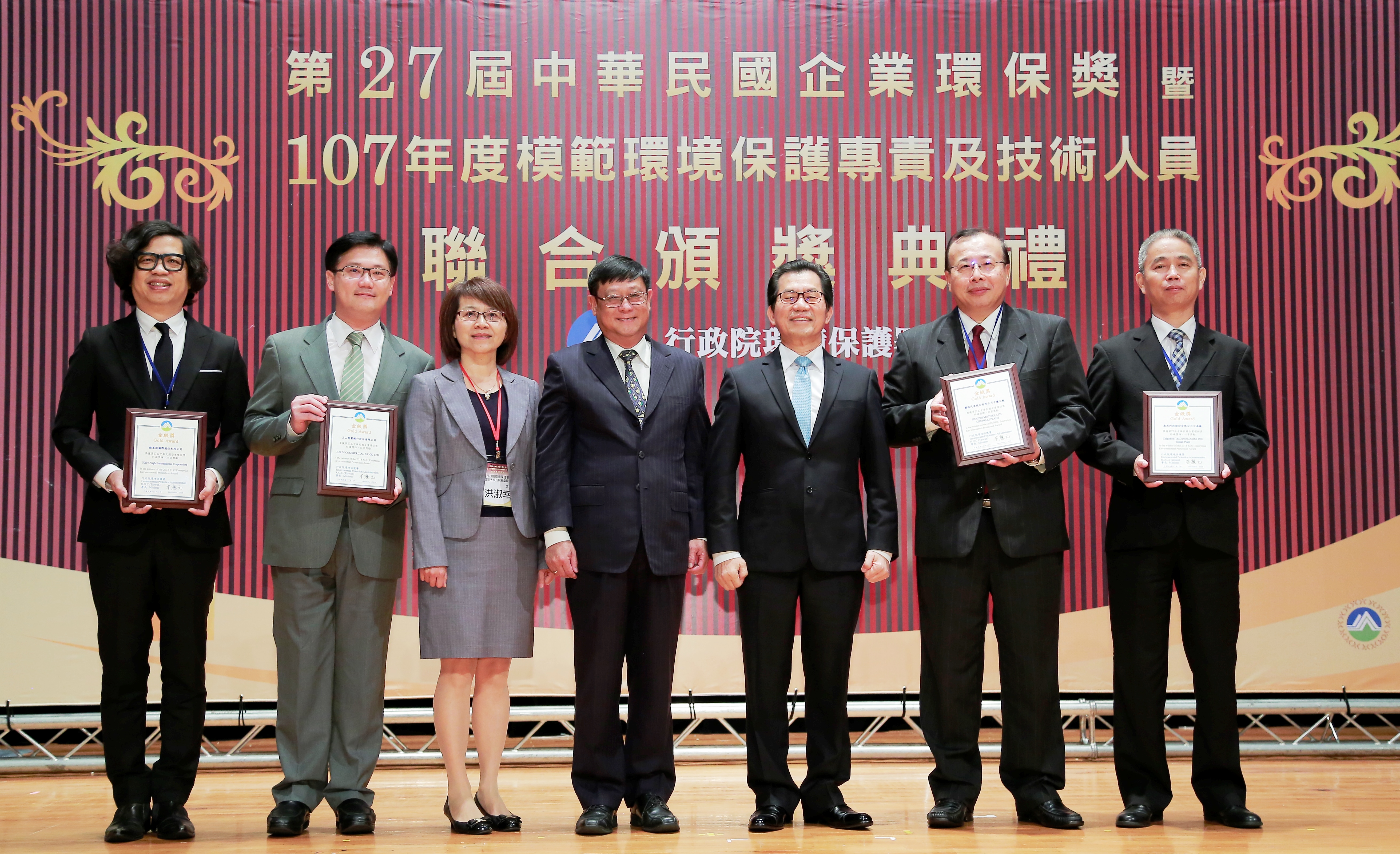 象徵企業最高環保榮譽獎項的「第27屆中華民國企業環保獎」,於今天(7日)上午10時假公務人力發展學院卓越堂舉行頒獎典禮。環保署為表彰企業致力推動環境保護工作的貢獻,連續27年辦理中華民國企業環保獎,參選事業歷經初評、複評、決選等評選階段過關斬將,遴選出本年度獲獎企業,環保署並頒發獎牌予獲獎的24家事業單位(名單如附件)。此外,今年頒獎典禮同時頒發10位獲得107年模範環境保護專責及技術人員。