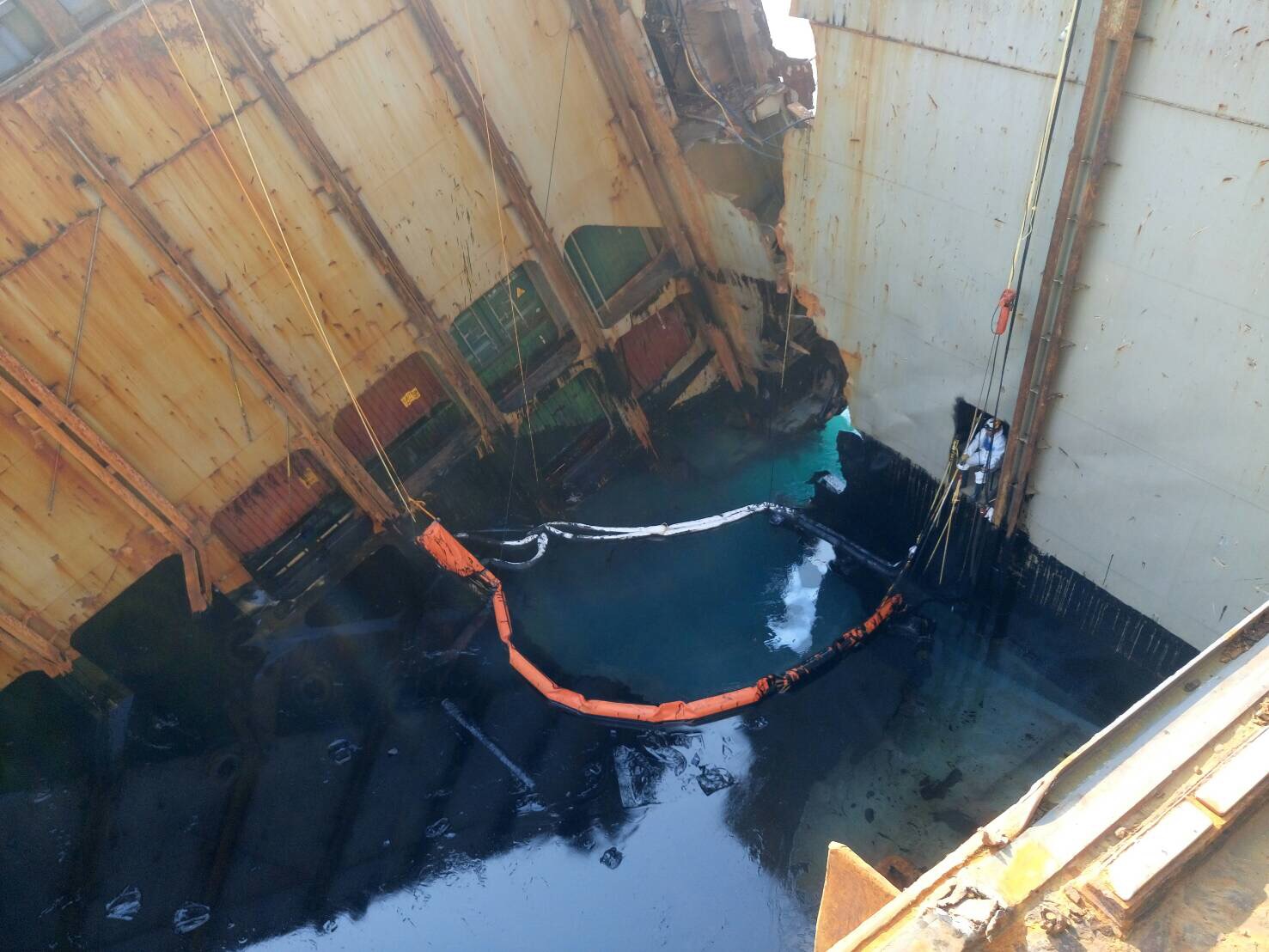 船東於今(29)日中午派遣潛水員下水進行船體坐底及海下礁石分布情形攝影作業,並說明目前事故船船體已坐底於礁岩及鵝卵石之間,暫時無翻覆危險。預計於2個月內完成岸際清除作業,其中包含岸際浮油撈除作業5天,岸際污染礁石以高壓噴洗方式作業30天,及後續環境復原期估計約25天。