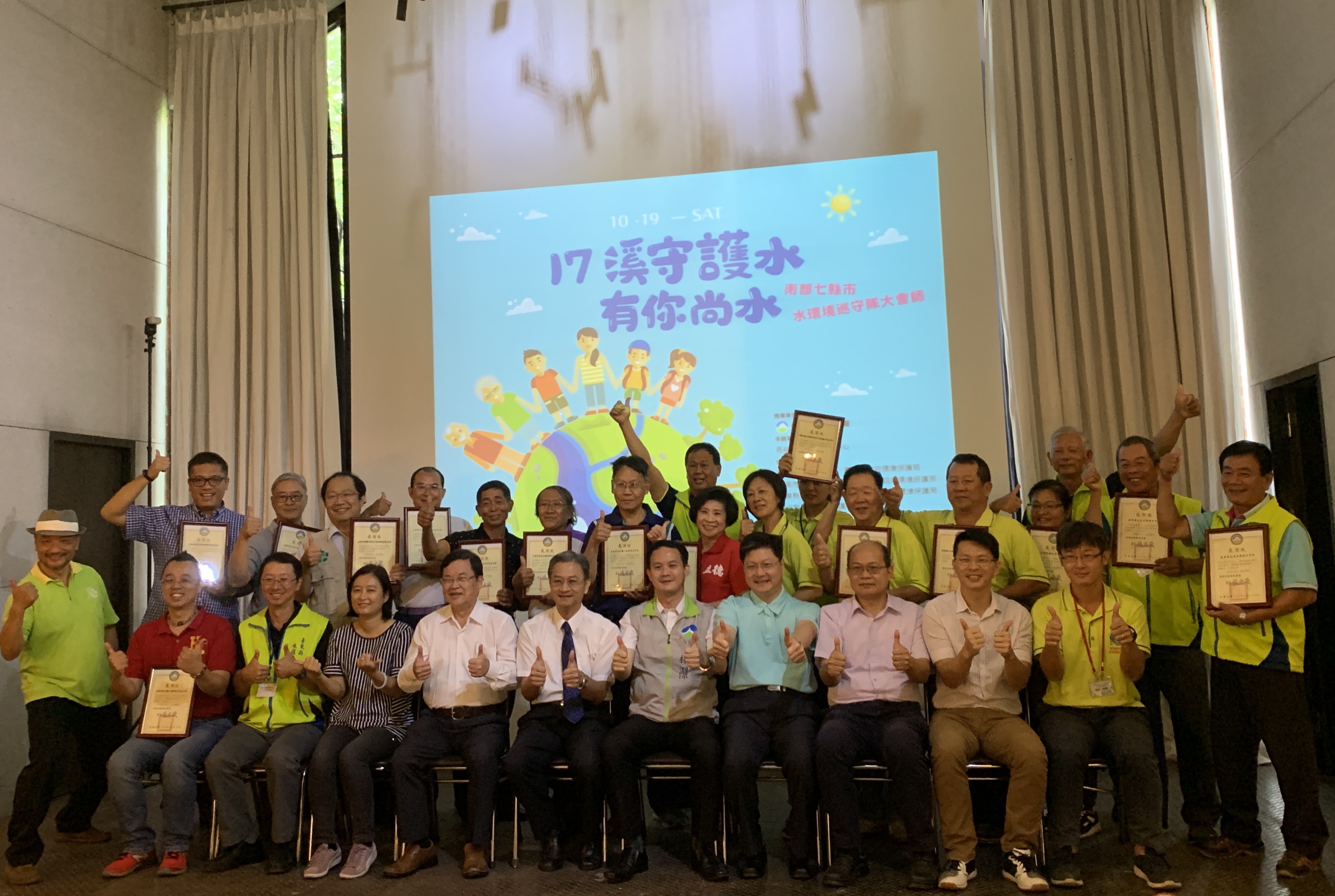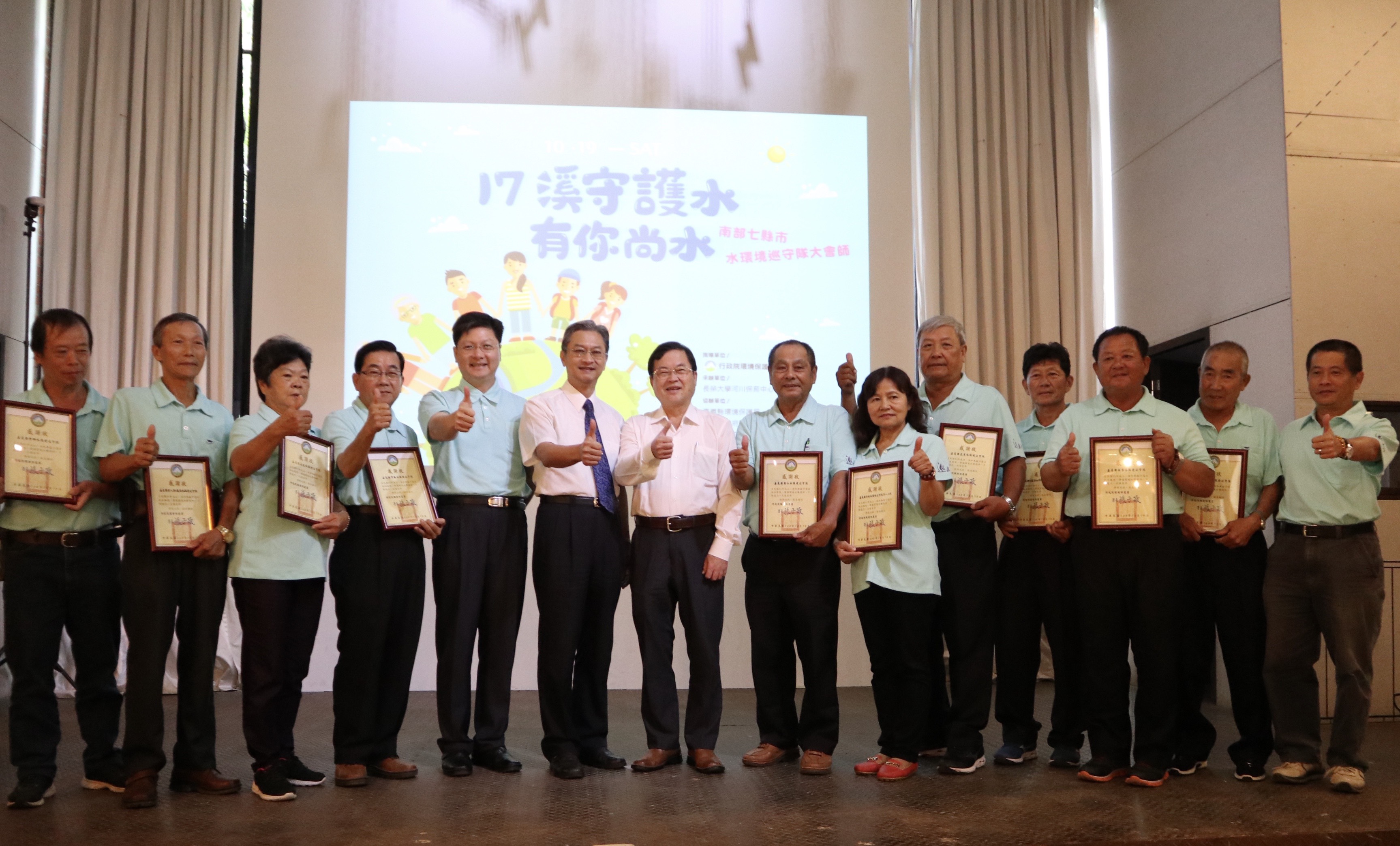 環保署今(19)日邀集南部七縣市水環境巡守隊,在臺南市三爺溪畔十鼓文化創意園區舉辦「17溪守護水,有你尚水」活動,表揚成立滿17年及15年的水環境巡守隊,感謝他們守護水環境的堅持及無私貢獻,並透過頒贈感謝狀及資深隊員經驗分享,讓民眾參與水環境巡守隊生生不息!