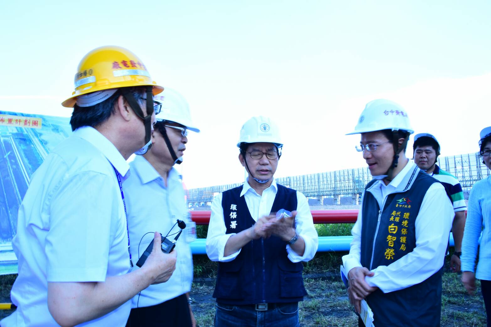 李署長為了解臺中火力發電廠及中龍鋼鐵公司煤碳原(燃)物料貯存場因露天堆置所需揚塵逸散措施控制情形,於視察後,對於中龍公司正進行建構室內堆置場表示肯定,指示在室內化工程完成前,應做好防塵措施。