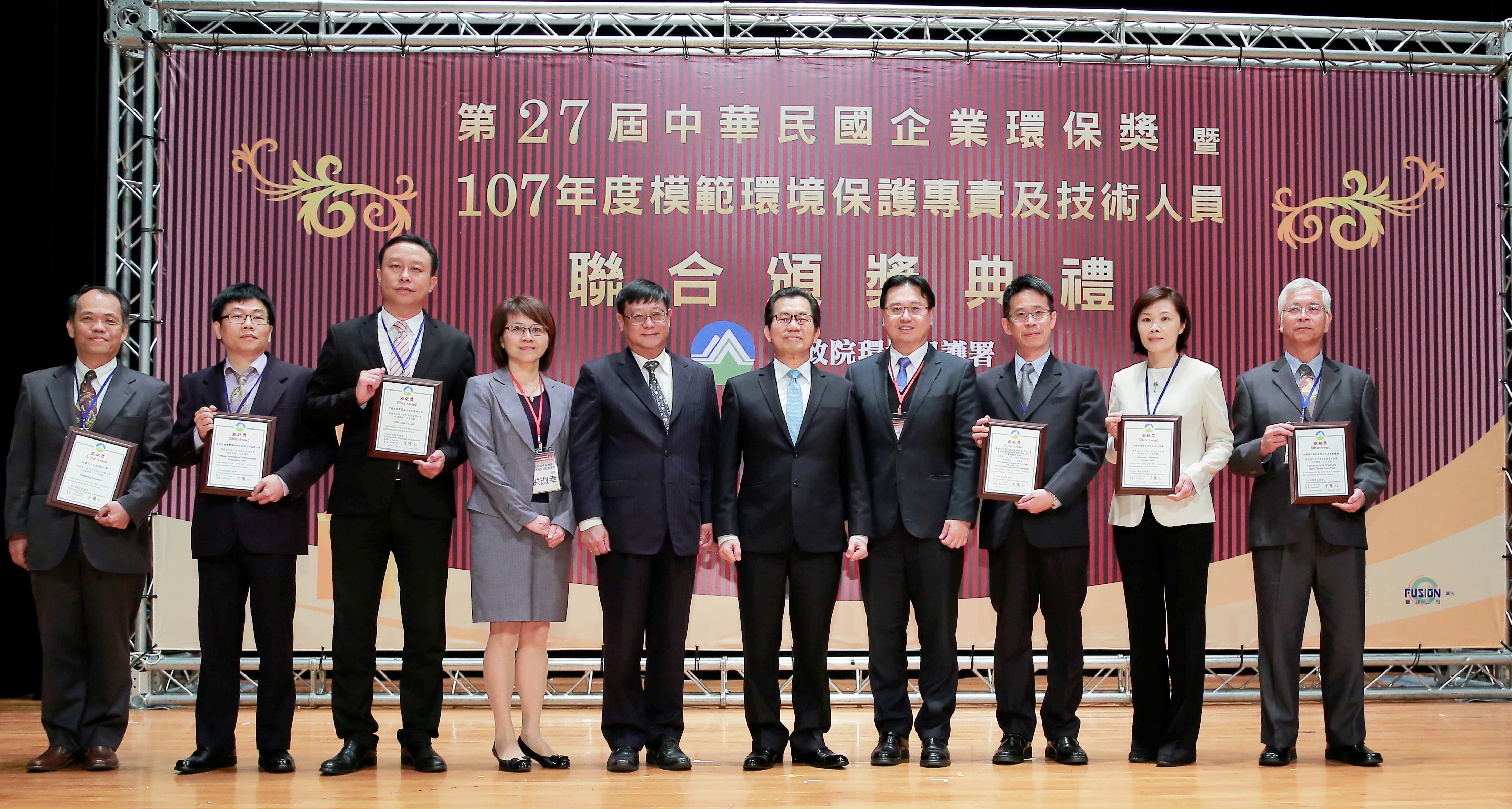 象徵企業最高環保榮譽獎項的「第27屆中華民國企業環保獎」,於今天(7日)上午10時假公務人力發展學院卓越堂舉行頒獎典禮。環保署為表彰企業致力推動環境保護工作的貢獻,連續27年辦理中華民國企業環保獎,參選事業歷經初評、複評、決選等評選階段過關斬將,遴選出本年度獲獎企業,環保署並頒發獎牌予獲獎的24家事業單位(名單如附件)。此外,今年頒獎典禮同時頒發10位獲得107年模範環境保護專責及技術人員。