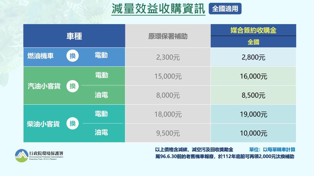 附表1 全車種汰換減碳減空污媒合價格表(全國適用)